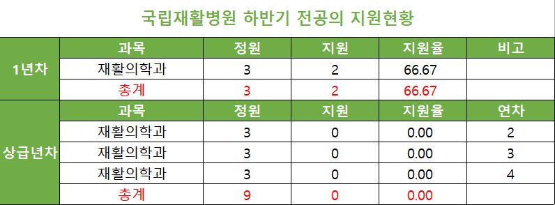 [국립재활병원 하반기 전공의 지원현황]