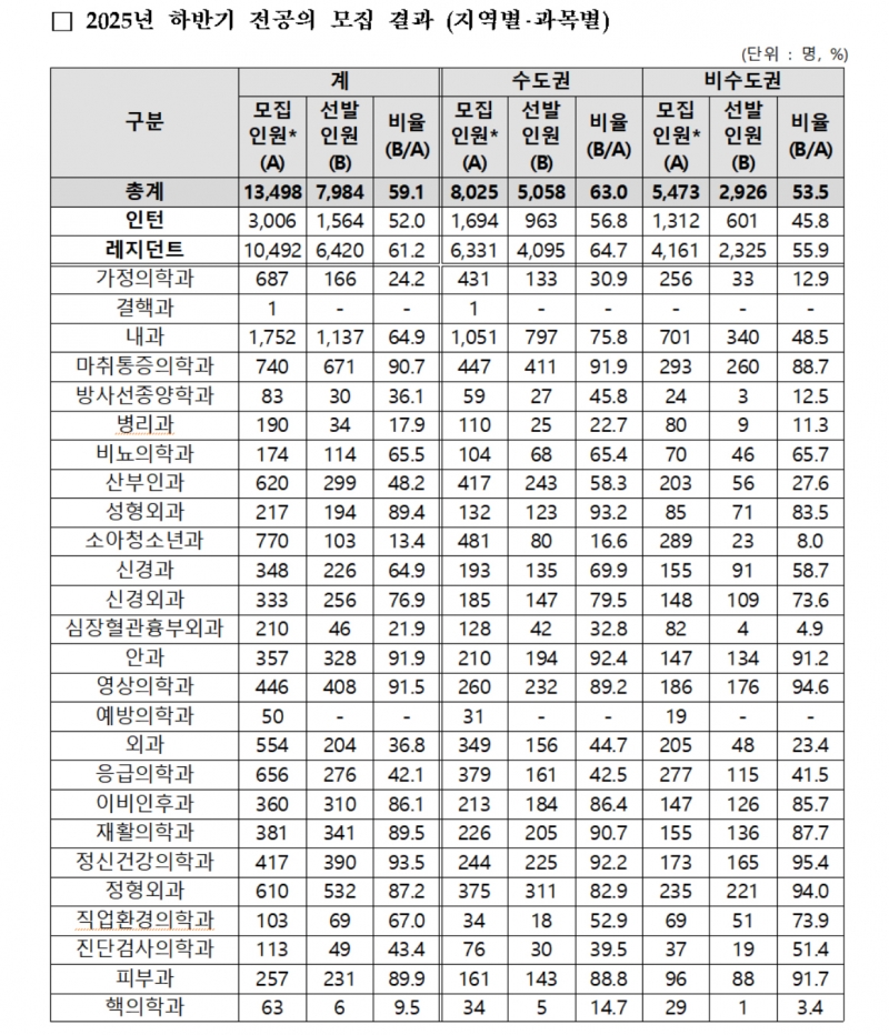 2025년도 하반기 전공의(인턴 및 레지던트) 모집 결과, 최종 7984명이 선발됐다. 하지만 수도권 쏠림과 필수과 기피 현상은 여전했다.