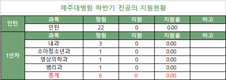 [제주대병원 하반기 전공의 지원현황]