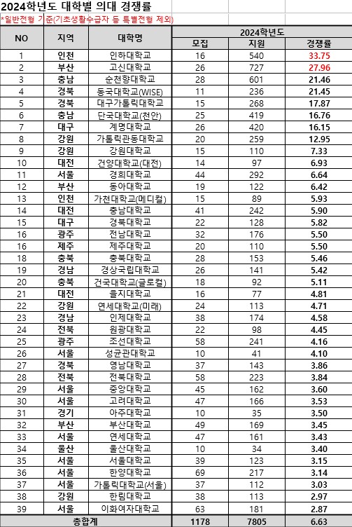종로학원 관계자는 “서울수도권 학생들이 대거 지방권 의대에 지원한 것으로 보여진다”라며 “전국 39개 의대 평균 경쟁률은 6.63대 1로, 지난해 6.71대 1과 비슷한 수준”이라고 분석했다.