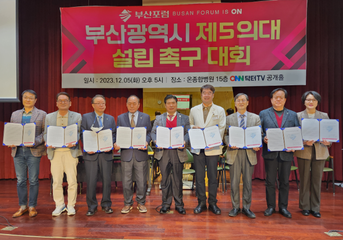 사단법인 부산의료발전재단(이사장 김동헌, 온종합병원 병원장)과 부산포럼(공동이사장 박수용, 새마을금고 부산연합회 회장)은 지난 5일 온종합병원에서 ‘부산 제5 의과대학 설립 촉구대회’를 개최했다.