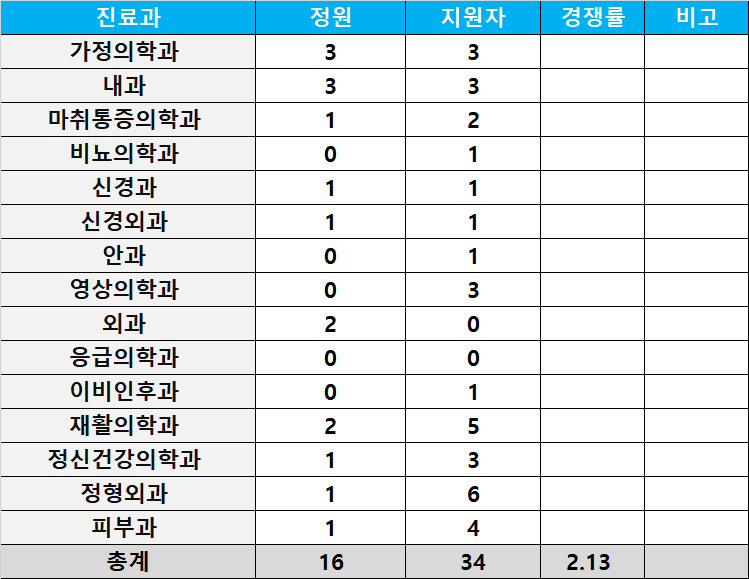[2024년도 상반기 레지던트 지원현황] 중앙보훈병원