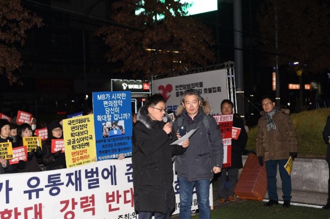 한편, 5차 안전상비약 회의 시작 전 서울·경기·인천 지역 약사회와 약준모 회원 등 100명의 약사들이 심평원 서울사무소 앞에서 편의점 의약품 품목 확대 움직임을 저지하기 위한 반대시위를 가졌다.