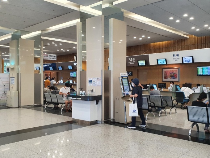 다만 이날은 전공의 4년차와 인턴 1년차만 파업에 참여했다. 1,2,3년차가 순차적으로 파업에 나서는 향후 혼란은 불가피할 것이라고 병원 관계자들은 이야기한다. 21일 오전 강동경희대병원 외래진료 접수처가 환자들로 붐비고 있다.