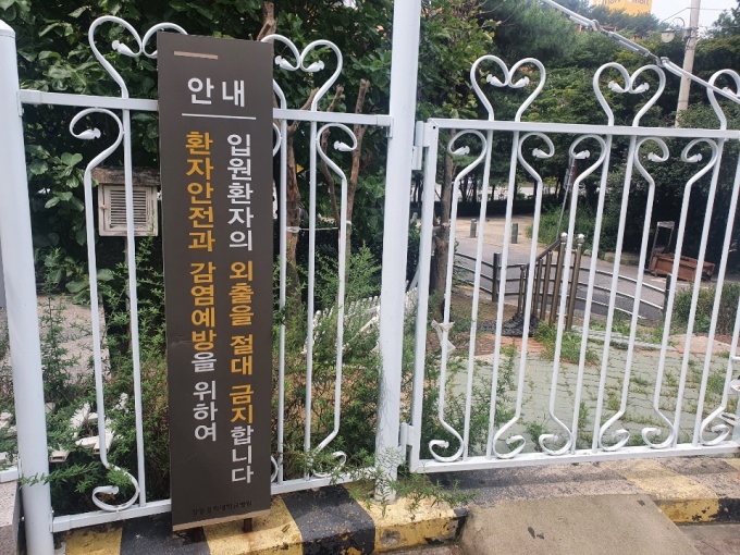 입원 환자들의 출입 통제도 지속되고 있다. 강동경희대병원이 병원 쪽문을 폐쇄한 모습이다.