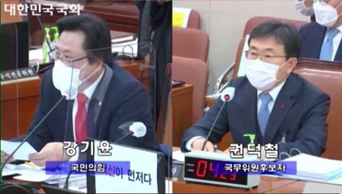 국민의힘 강기윤 의원은 “대통령도 백신 구매 실패와 관련해 참모를 질타했고, 국무총리도 백신 구매 활동에 치중하지 못했다고 자인했다”고 지적했다.