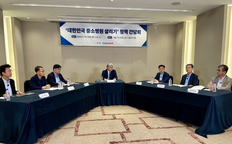 [특별기획 상] 대한민국 의료의 중추 역할을 수행해 온 중소병원들이 신음하고 있다. 의료인력난을 비롯해 급변하는 정책 변화로 고충이 심각한 상황이다. 특히 건강보험 보장성 강화에 따른 대형병원으로의 환자 쏠림 현상이 가속화 되면서 그야말로 절체절명의 위기다. 특단의 대책이 마련되지 않으면 의료전달체계의 근간이 무너질 수 있다는 우려가 커지고 있다. 중소병원 경영난이 가속화되는 상황 속에 데일리메디는 2022년 특별기획으로 대한중소병원협회와 함께 '대한민국 중소병원 살리기 정책 간담회'를 개최했다. 중소병원이 직면한 작금의 상황을 조명하고 회생책을 모색하기 위해 마련된 이번 좌담회는 대한중소병원협회 라기혁 수석부회장이 좌장을 맡고 ▲보건복지부 고형우 보건의료정책과장 ▲더불어민주당 조원준 수석전문위원 ▲대한중소병원협회 김태완 정책부회장 ▲대한중소병원협회 박인호 지역부회장 ▲대한중소병원협회 황정한 지역부회장 ▲대한중소병원협회 김상일 기획위원이 패널로 나섰다. 참석자들은 대형병원 환자 쏠림을 비롯해 의사와 간호사 인력난, 의료법인 퇴출 구조 등 중소병원을 옥죄고 있는 각종 현안에 대해 허심탄회한 논의를 진행했다. [편집자주]