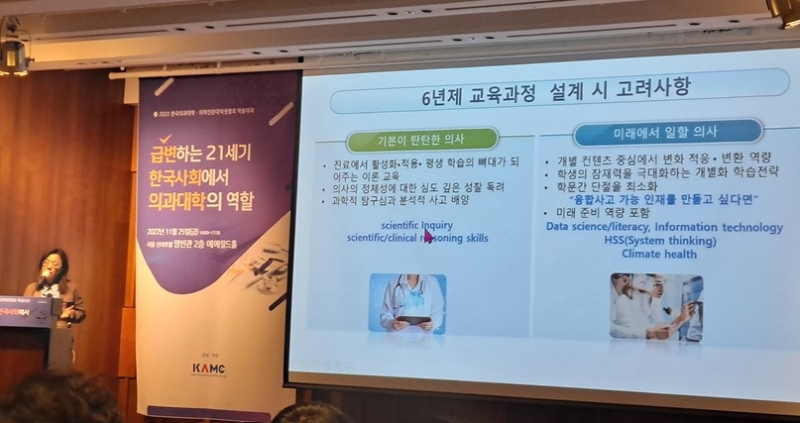 지난 25일 서울 신라호텔에서 열린 한국의과대학·의학전문대학원협회(이사장 신찬수, 의대협회) 학술대회에서 왕규창 대한민국의학한림원장, 이영미 고려의대 교수(의학교육학교실)는 이같이 주장했다.