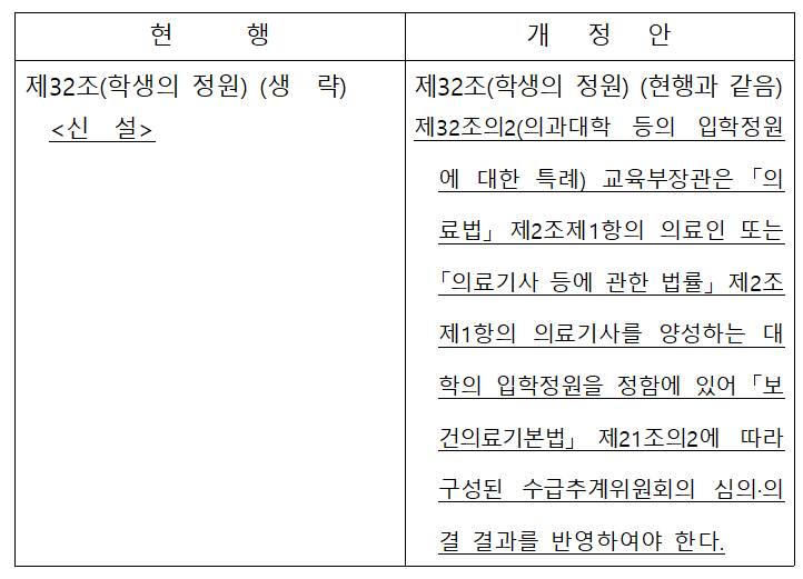 이는 교육부 장관이 의대정원 등을 결정할 때 추계위의 심의·의결 사항을 반영토록 의무화하는 특례조항을 신설하는 게 골자다.
