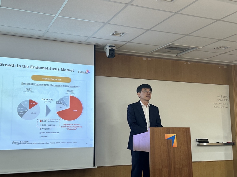 김훈택 티움바이오 대표는 7일 서울 여의도 금융투자교육원에서 열린 '메리골릭스(Merigolix, TU2670)' 유럽 임상 2a상 탑라인(Topline) 데이터 관련 간담회에서 이같이 말했다.