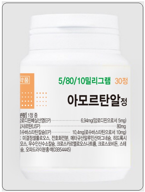 아모르탄알정은 Amlodipine/Valsartan/Rosuvastatin 성분의 CCB/ARB/Statin 3제 복합제로 5/80/5mg, 5/80/10mg, 5/160/5mg, 5/160/10mg 4가지 용량이 출시됐다.