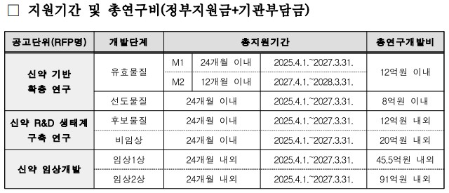 이번 정부 지원 사업은 합성의약품, 바이오의약품, 천연물의약품 등 광범위한 신약 후보 물질 연구를 포괄한다. KDDF는 금년 1월 공모를 시작해 평가를 거쳐 지원 대상자를 선정했다.
