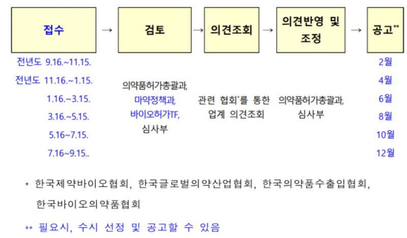 기존에는 대조약 선정을 위해 분기마다 신청서를 접수하고 3월과 6월, 9월 12월 등 1년에 4번 정기적으로 공고했다.