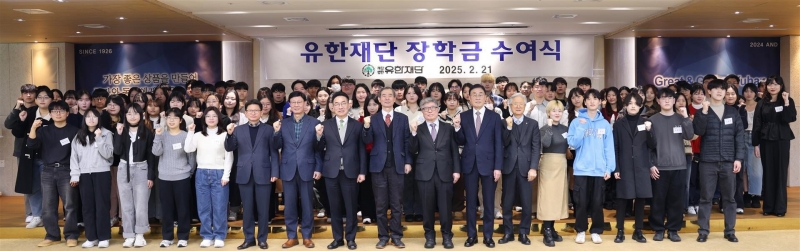 유한재단(이사장 김중수)은 지난 2월 21일 유한양행 4층 대강당에서 ‘2025년 유한재단 장학금 수여식’을 가졌다. 이날 행사에는 김중수 유한재단 이사장, 조욱제 유한양행 대표이사 등이 참석했다.