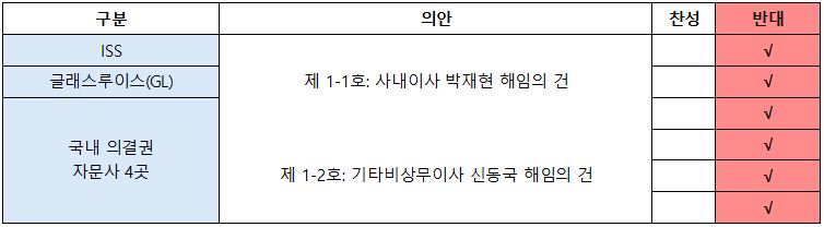 이미 앞서 이달 6일에는 세계 최대 의결권 자문사 두 곳 ISS와 글래스루이스(이하 GL)도 이 안건에 ‘반대한다’는 의견을 담은 보고서를 해외 기관투자자들에게 전달했다.