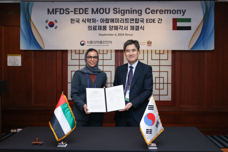 이번 양해각서 체결은 지난 5월 식약처-UAE EDE 고위급 양자 회의에서 '합의 의사록'을 서명한 이후 양국 규제기관 간 협력관계를 강화한 것으로 이란, 사우디에 이어 세 번째 중동 국가와 의료제품 분야 협력이다.