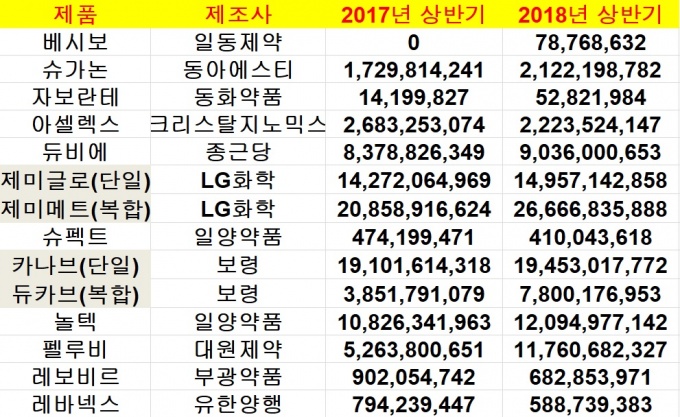 업계 관계자는 “제미글로 패밀리, 카나브 패밀리, 펠루비 등을 제외하면 처방이 늘고 있지만, 가시적인 성과를 내는 제품이 적은 상황”이라며 “새로운 기전을 가진 혁신적인 의약품이 아니라 기존의 스테디셀러 품목과 유사한 효능 및 효과를 가져 처방 변경의 필요성을 의료진이 잘 느끼지 못하기 때문”이라고 분석했다.