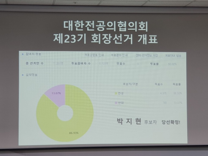 이 회장은 “작년 선거 당선 시 1년 후 이 자리에 섰을 때 투표율을 올리는 것을 하나의 목표로 삼았다. 50%를 돌파한 이번 투표율은 전공의들이 그만큼 제22대 대전협 성과를 인정해준 결과라고 본다”고 전했다.