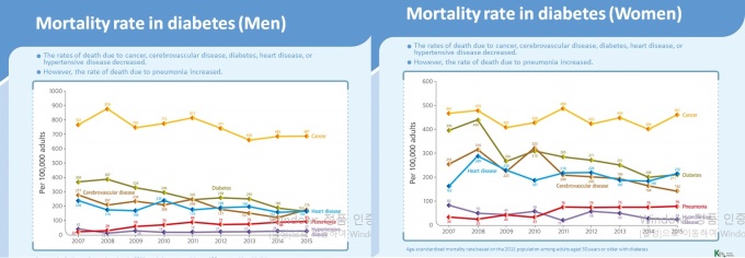 또 당뇨병 환자의 전체적인 사망률은 감소했지만, 폐렴으로 인한 사망률은 크게 증가했다.