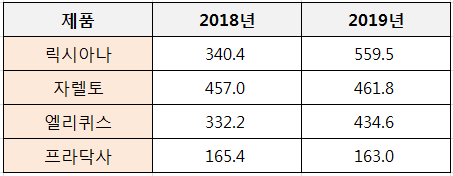 지난 2016년 2월 출시된 릭시아나는 2019년 1분기 선두 품목인 '자렐토'를 추월한 뒤 줄곧 1위 자리를 유지하며 시장에서 확고한 입지를 굳혔다.