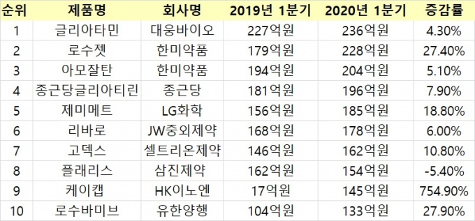 [데일리메디 양보혜 기자] 코로나19 여파로 올해 1분기 국내 제약사의 원외처방 실적이 저조할 것으로 예상됐지만, 막상 뚜껑을 열어보니 결과는 달랐다. 특히 상위 품목 대다수의 처방 실적이 증가했다.