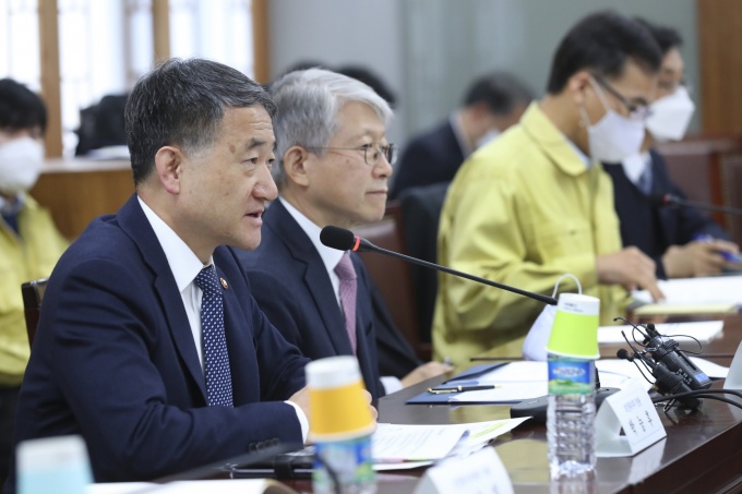 이날 회의에는 박능후 보건복지부 장관(코로나19 중앙재난안전대책본부 1차장)과 최기영 과학기술정보통신부 장관, 이의경 식품의약품안전처장, 관계부처 차관 및 국내 치료제·백신 분야 전문가 등이 참석했다.