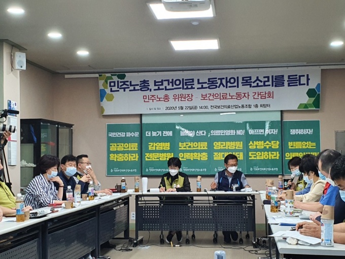 지난 22일 보건의료노조 1층 희망터에서는 민주노총 위원장과 보건의료노동자들의 간담회가 열렸다.