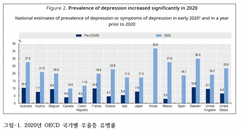 학회는 “코로나19 이후 세계 우울증 발생이 2배 이상 증가했고, 한국의 우울증 유병률은 36.8%로 세계 1위”라며 “우리나라 국민 10명 중 4명이 우울증 또는 우울감을 느낀다는 것은 충격적”이라고 평했다.