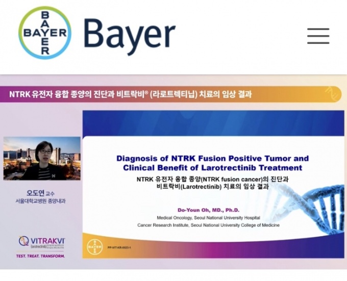 바이엘코리아는 13일 전연령 대상 유일한 NTRK 유전자 융합 고형암 항암제 ‘비트락비’ 진단과 치료를 주제로 한 미디어 세미나를 온라인으로 개최했다.