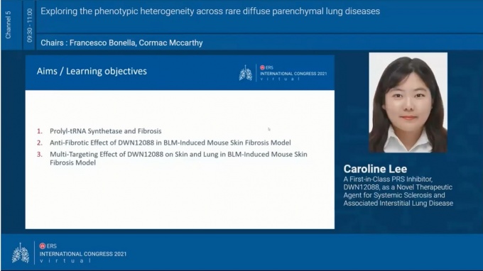 대웅제약(대표 전승호)은 9월 5일부터 8일까지(현지 시간) 온라인으로 진행된 유럽호흡기학회(ERS) 연례학술대회에서 ‘DWN12088’의 전신경화증 연관 간질성폐질환에 대한 비임상시험 결과를 발표했다고 9일 밝혔다.