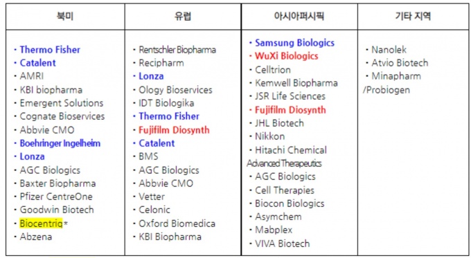 중국 우시 바이오로직스와 일본 후지필름 다이오신스 바이오테크놀로지스 등도 경쟁력을 갖춘 회사로 주목받고 있다.