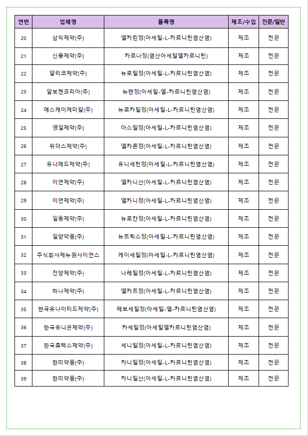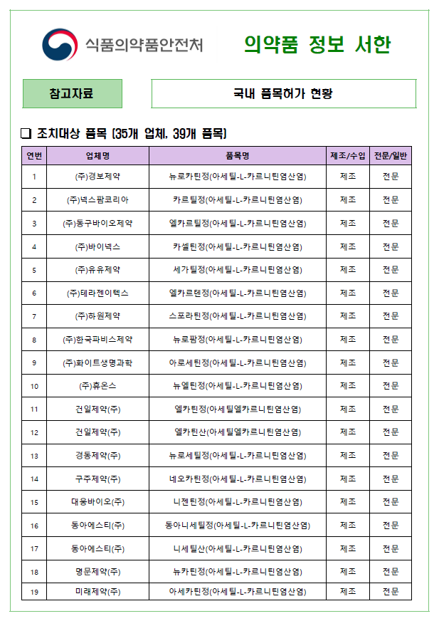 아세틸엘카르니틴 성분은 지난 2013년 식약처가 진행한 문헌 재평가에서 유효성을 입증하기 위한 자료가 미비, 임상재평가가 내려진 바 있다.