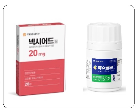 넥시어드는 올해 1월 출시된 PPI 계열 위식도역류질환치료제며, P-CAB 제제인 펙수클루는 이보다 늦은 금년 7월 시장에 출시됐다.
