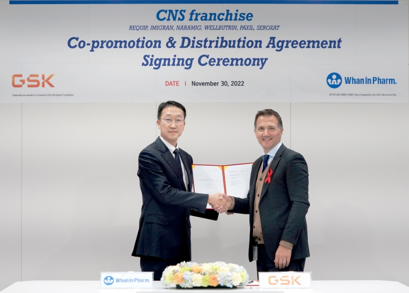 환인제약(대표이사 이원범)이 GSK(사장 롭 켐프턴)와 중추신경계 6개 주요 품목에 대한 국내 판매 및 유통계약을 체결했다고 1일 밝혔다.