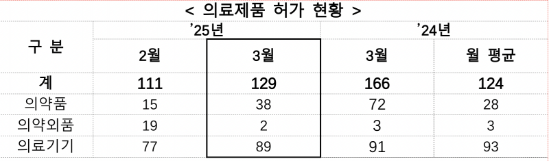 지난 3월 한 달 간 의료제품 총 128개 품목이 허가됐다.