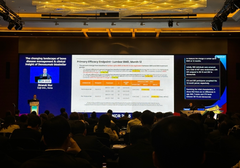 허진욱 교수(노원을지대병원 류마티스내과)는 16일 서울 여의도 콘래드호텔에서 열린 '제45회 대한류마티스학회 춘계학술대회(KCR2025)'에서 골다공증 질환의 특징과 치료 접근법, 그리고 삼성바이오에피스가 개발한 프롤리아 바이오시밀러 SB16(오보덴스 프로젝트명)의 임상시험 결과를 공개했다.