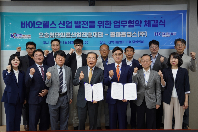 오송첨단의료산업진흥재단(KBIOHealth·이사장 이명수)는 콜마홀딩스(대표이사 윤상현)와 화장품, 의약품, 건강식품 개발 및 글로벌 경쟁력 강화를 위한 업무협약(MOU)을 체결했다고 26일 밝혔다.