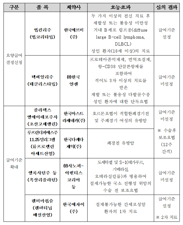 이중특이성 항체 치료제 신약 엡킨리주가 급여 대상에 새롭게 포함되고 간암치료제 렌비마의 급여 범위가 확대됐다.