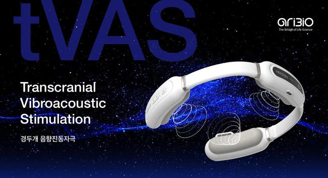 아리바이오의 tVAS 기기는 기존 전기·자기 자극 방식과 달리 머리에 닿는 저주파 음향진동을 통해 뇌 신경 회로를 직접 조절한다.
