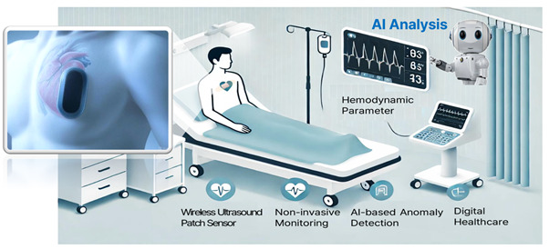 이 기기는 신체에 부착하는 일회용 무선 초음파 패치 센서를 활용해 심혈관 질환 환자 상태를 실시간으로 분석하고 조기 이상을 감지해 예후를 효과적으로 관리하는 것을 목표로 한다.