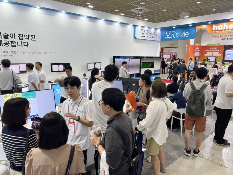 지난 9월 17일 오후 서울 코엑스 ‘K-Hospital Fair 2025’ 현장. 퍼즐에이아이 부스 앞은 ‘핸즈프리 의무기록 솔루션’을 체험하려는 관람객들로 북적였다.