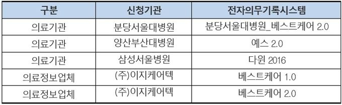 이번에 인증을 획득한 5개 제품은 분당서울대병원과 삼성서울병원, 양산부산대병원에서 운영 중인 전자의무기록시스템과 의료정보업체인 이지케어텍의 상용 제품 2종이다.