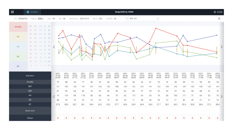 뷰노메드 딥카스™는 환자 심정지 발생 위험을 사전에 알려 의료진 선제적 대응을 가능하게 하는 소프트웨어다.