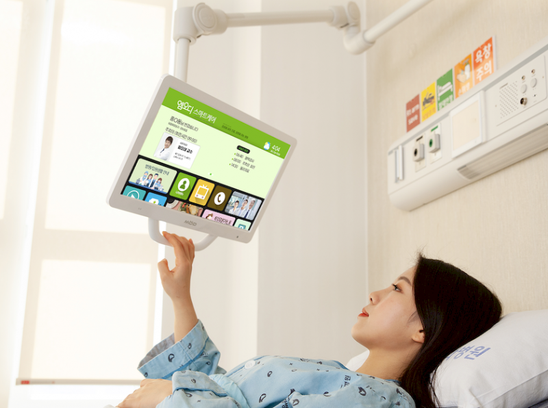 엠오디는 병상티비 외에 병실 청소요청, 편의점 주문 등의 병원과 연계한 서비스도 선보였다.