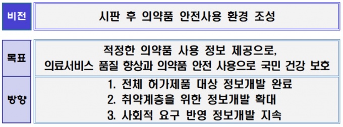 이번 계획은 적정한 의약품 사용 정보를 제공해 의료서비스 품질을 향상시키고 의약품을 안전하게 사용해 국민 건강을 보호하기 위한 목적으로 마련됐다.