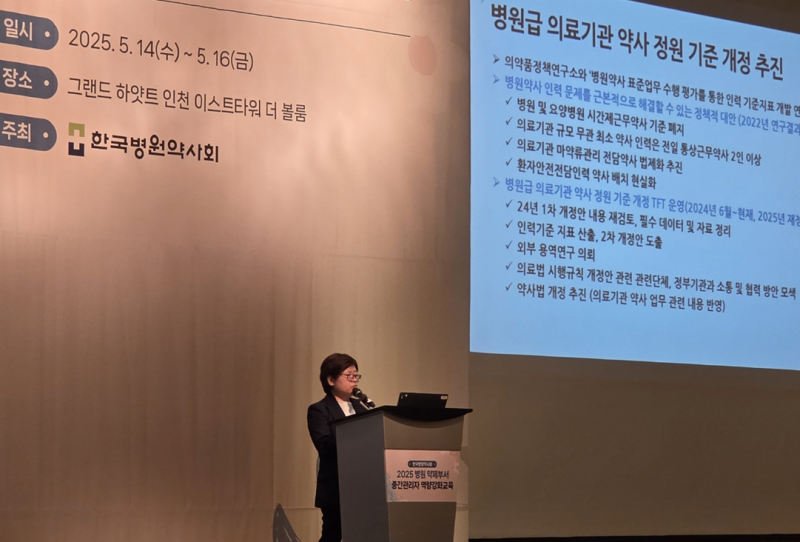 지난 15일 그랜드 하얏트 인천에서 열린 '2025 병원 약제부서 중간관리자 역량강화교육'에서 손현아 한국병원약사회 사무국장은 올해 중점 추진 사업을 소개했다.