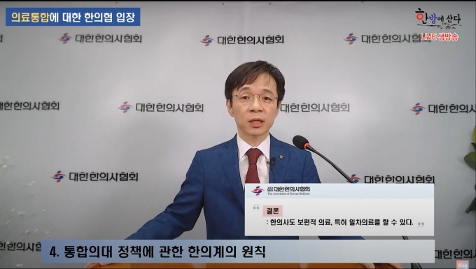 여당의 발표가 있은지 얼마 되지 않아 최 회장은 유튜브 방송을 통해 의대-한의대 통합을 위한 구체적인 정책을 제안했다.