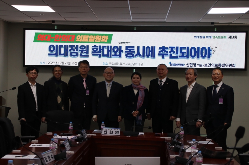 21일 오전 국회의원회관에서는 국회 보건복지위원회 신현영 의원·더불어민주당 보건의료특별위원회가 주최한 ‘의대정원 확대 연속 토론회 3차 : 의대-한의대 의료일원화’가 열렸다.