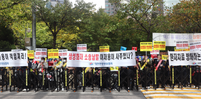 이들은 "한방의료기관을 대상으로 삼성화재가 소송을 남발하고 있다"며 "한방병원 치료가 자동차보험 진료수가 기준에 부합하는데도 이를 과잉진료라며 근거 없는 소송을 무차별적으로 제기하고 있다"고 비판했다.