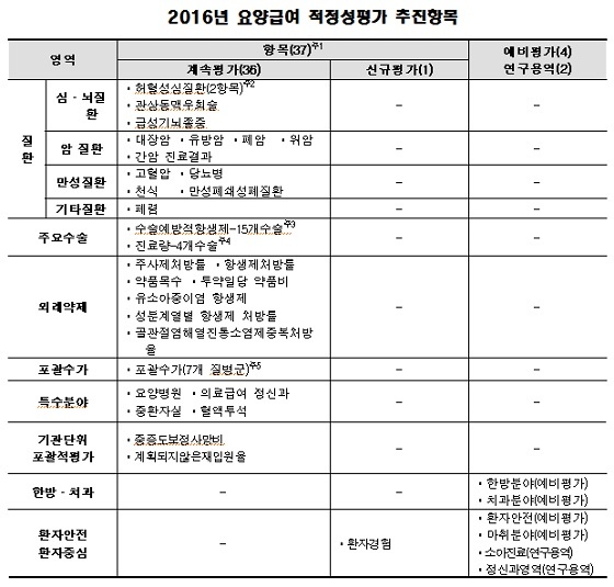건강보험심사평가원은 ‘2016년 요양급여 적정성 평가계획’을 22일 공개했다.